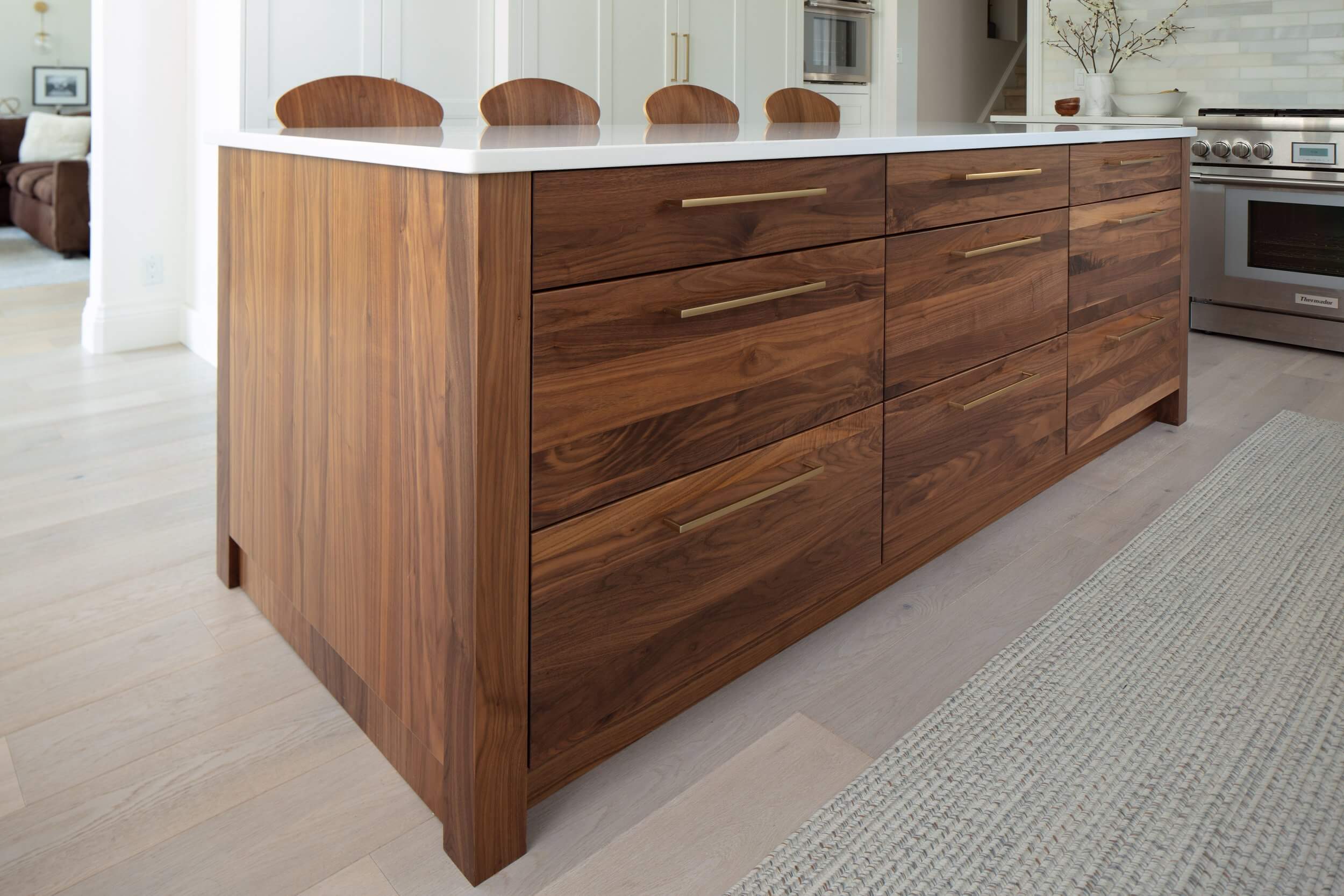 With a selection of materials that includes dark wood cabinets, detailed wood cabinets, and elegant finishes like brass cabinet fronts, your kitchen design can achieve a truly custom feel through cabinetry and finishes. From cabinetry design to custom hardware, every cabinet element works together seamlessly to support your vision.