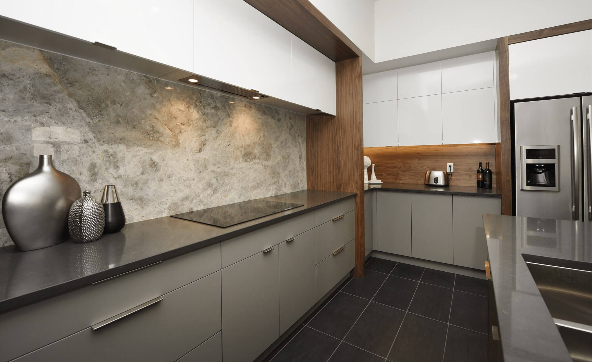 We offer a variety of cabinetry finishes, including solid wood, laminates, and cabinet doors with glass inserts. Our selection includes frameless cabinets for a seamless appearance and upper cabinets to maximize vertical storage.